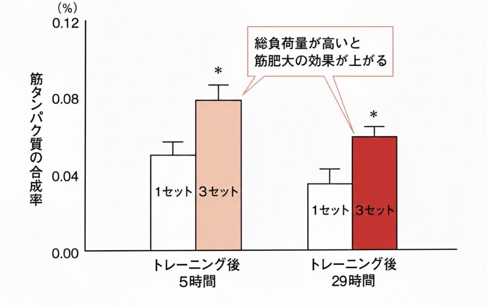 この結果は、「重さが同じでも、量をこなせば筋肉はより作られる」という単純かつ強力な事実を突きつけました。