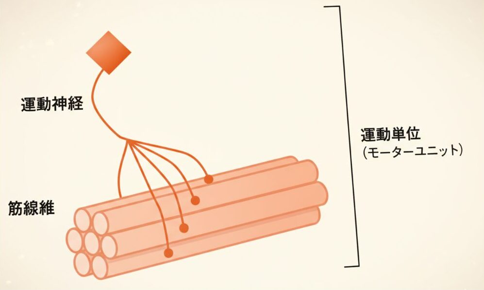 筋肉を動かしているのは、脊髄から伸びる運動神経とそれが支配する筋線維のセットである「運動単位(モーターユニット)」です。