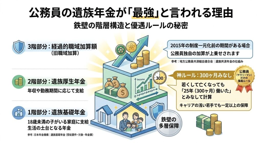 公務員の遺族年金が「最強」と言われる理由は、その「階層構造」と「優遇ルール」にあります。